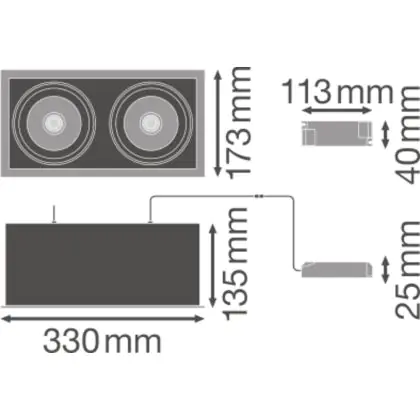 Ledvance LED Spot Vierkant Multi Kantelbaar Zwart-Wit 2x30W 5400lm 38D - 840 Koel Wit | Zaagmaat 320x160mm
