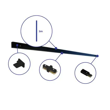 Rail Set 1-Fase 3 Meter Zwart | incl. Eindkap, Voedingsconnector en L-Verbindingsstuk
